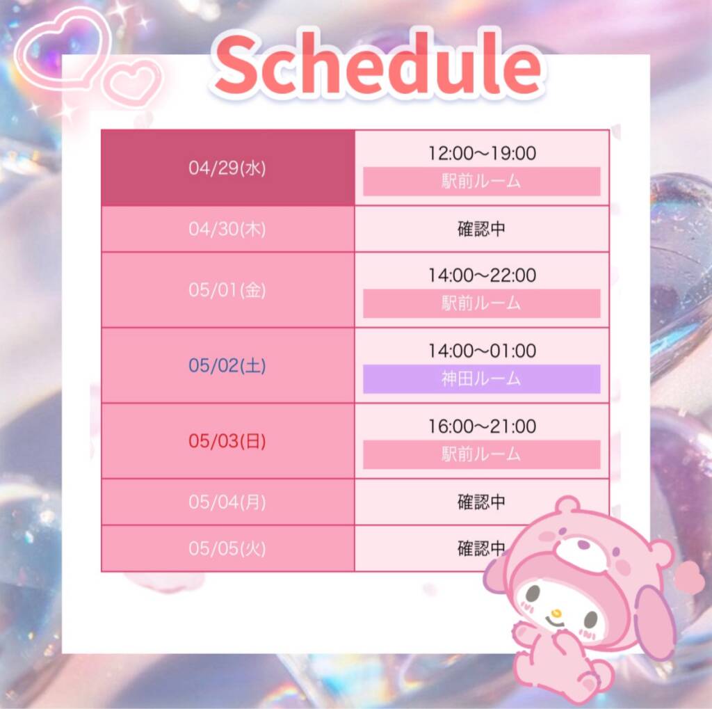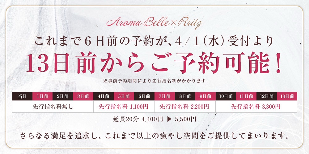 セラピストの出勤情報の確認、ご予約は上記のサイトからお問い合わせください