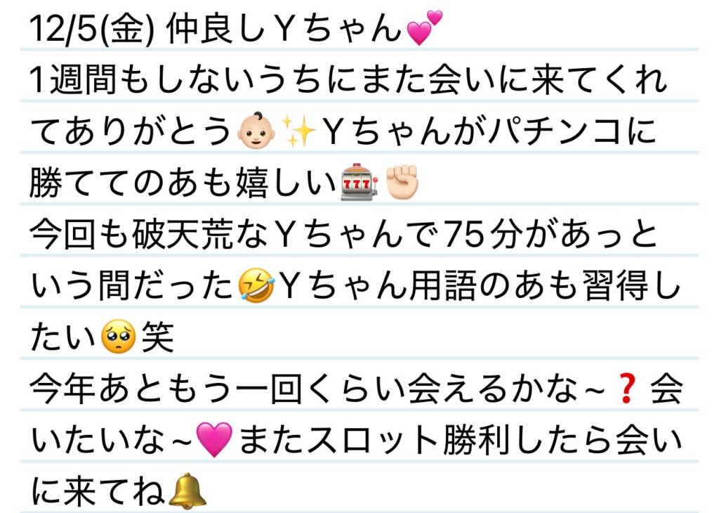 12/5(金) スロット勝てるように応援隊になる✊🏻Yちゃん💌