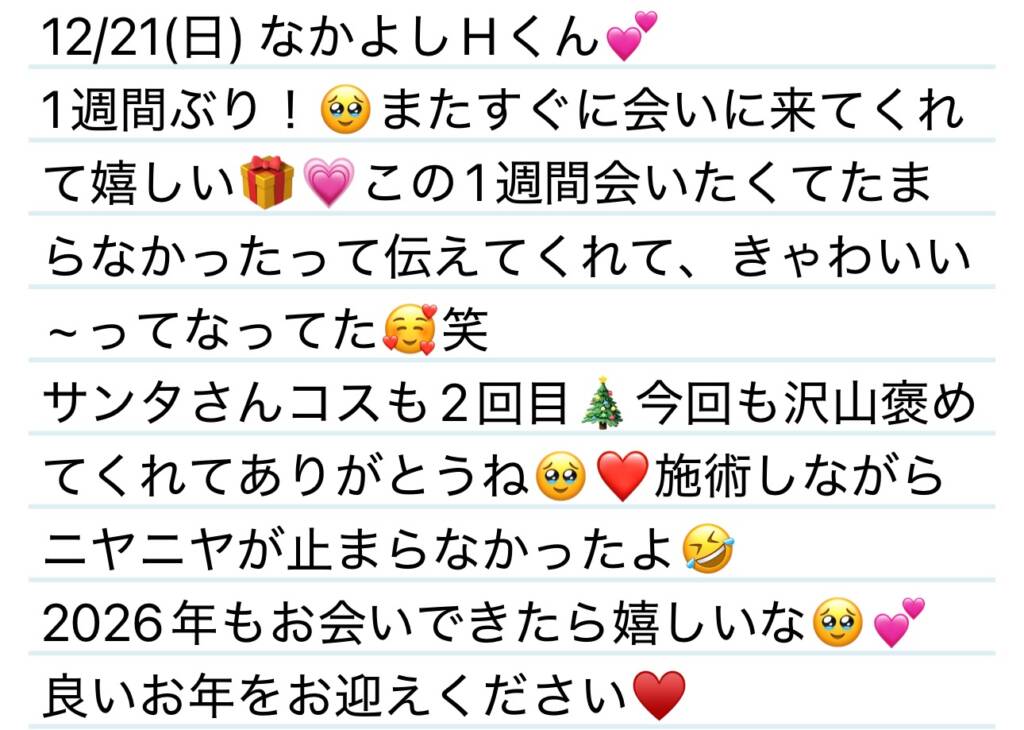 12/21(日) 2回目のサンタコスはちょっと雰囲気変えてみた🎄Hくん💌